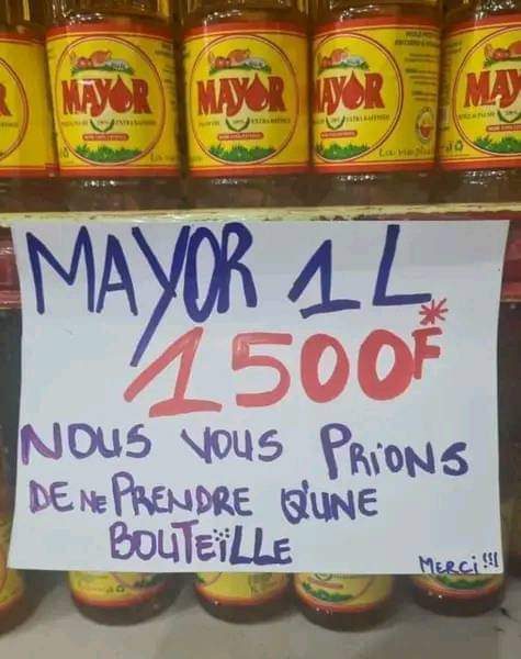 En conséquence, les centres commerciaux doivent lever sans délai ces restrictions dans l’achat de l’huile de palme raffinée. Cette situation occasionne de la spéculation entretenue par certains détaillants (boutiquiers du quartiers) qui vendent désormais la bouteille d’1L entre 1600 et 1900 F CFA.