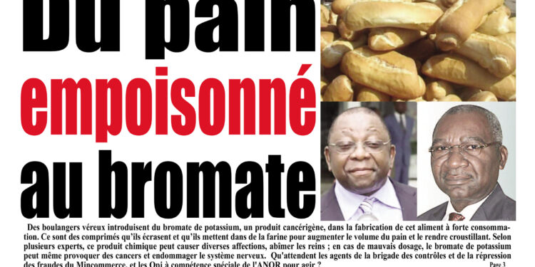 Des boulangers véreux introduisent du bromate de potassium, un produit cancérigène, dans la fabrication de cet aliment à forte consommation. Ce sont des comprimés qu’ils écrasent et qu’ils mettent dans de la farine pour augmenter le volume du pain et le rendre croustillant. Selon plusieurs experts, ce produit chimique peut causer diverses affections, abîmer les reins ; en cas de mauvais dosage, le bromate de potassium peut même provoquer des cancers et endommager le système nerveux. Qu’attendent les agents de la brigade des contrôles et de la répression des fraudes du Mincommerce, et les Opj à compétence spéciale de l’ANOR pour agir ?