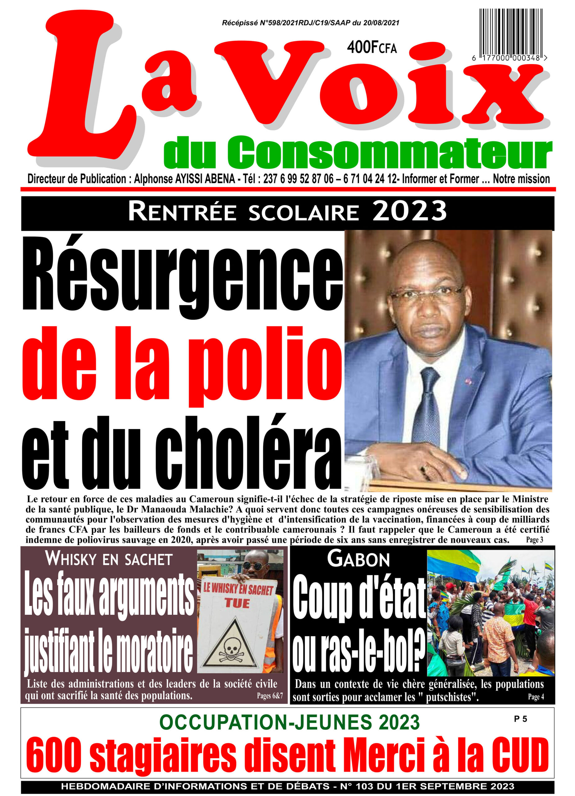 La Une du journal la Voix du consommateur du 07/06/2024 Cliquez ici pour télécharger le numéro Télécharger A la Une Ruée vers les passeportsLes Camerounais fuient-ils leur pays...