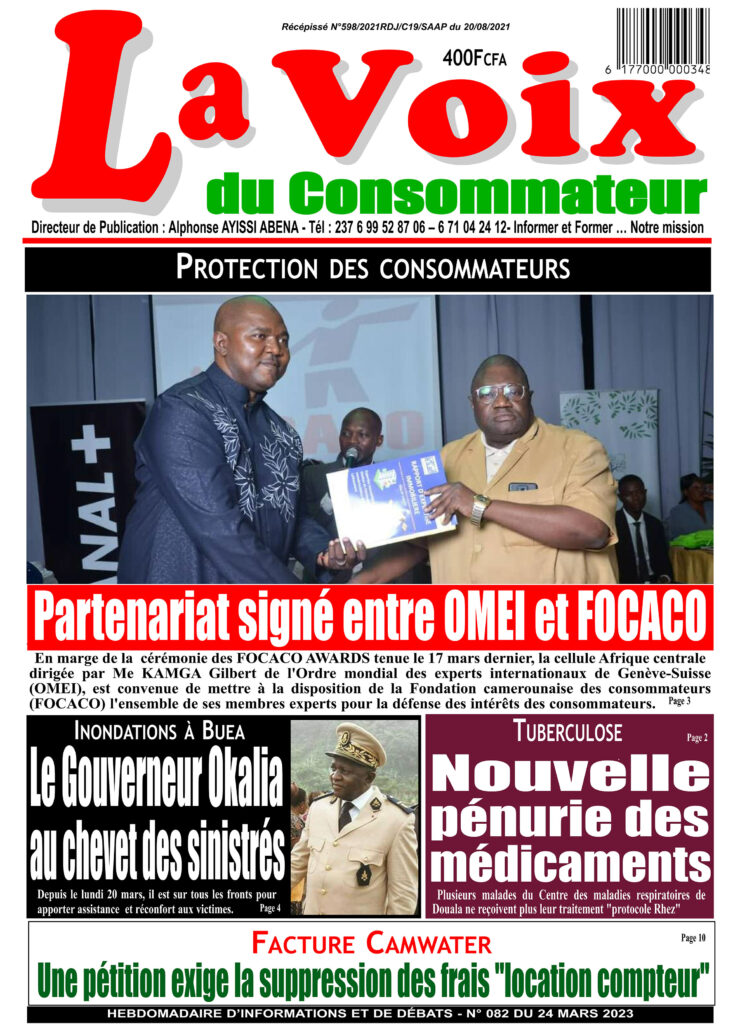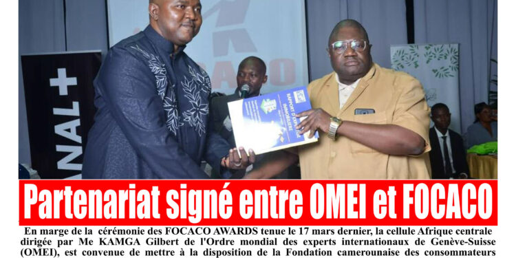 En marge de la cérémonie des FOCACO AWARDS tenue le 17 mars dernier, l’Ordre mondial des experts internationaux de Genève Suisse (OMEI), cellule Afrique centrale dirigée par Me KAMGANG Gilbert, est convenu de mettre à la disposition de la Fondation camerounaise des consommateurs (FOCACO) l’ensemble de ses membres experts pour la défense des intérêts des consommateurs.