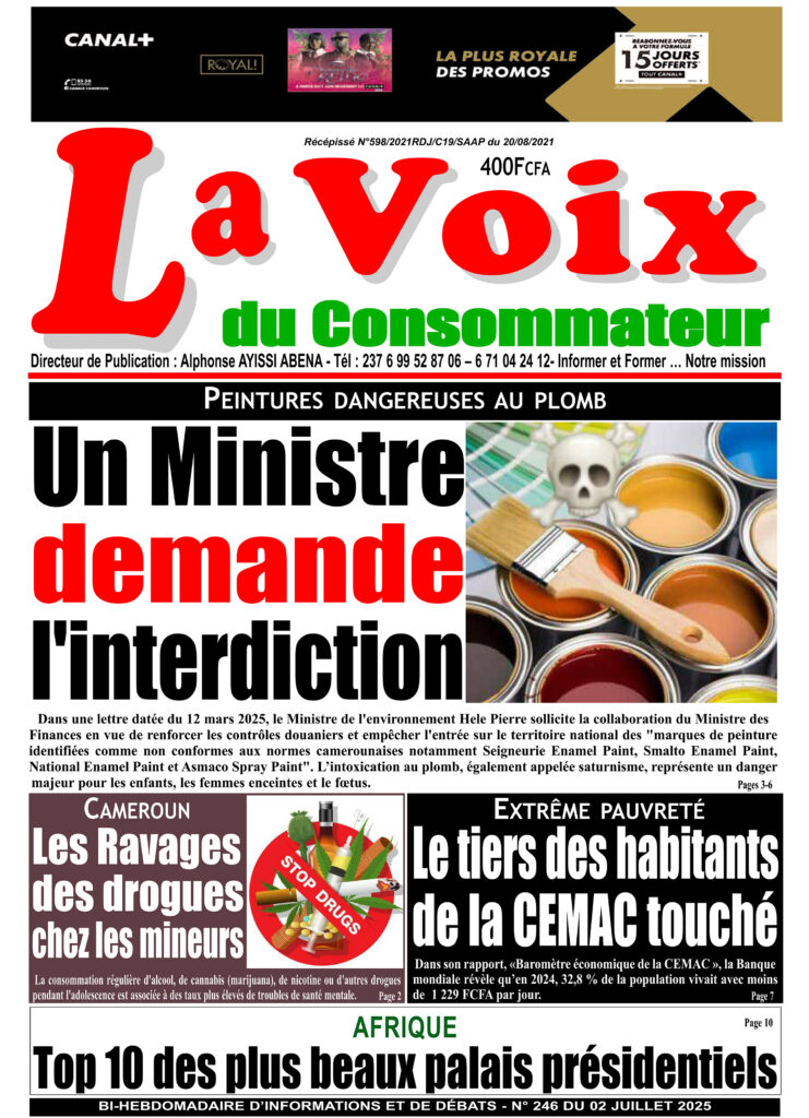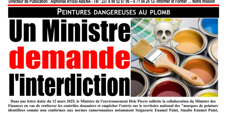 Dans une lettre datée du 12 mars 2025, le Ministre de l’environnement Hele Pierre sollicite la collaboration du Ministre des Finances en vue de renforcer les contrôles douaniers et empêcher l’entrée sur le territoire national des « marques de peinture identifiées comme non conformes aux normes camerounaises notamment Seigneurie Enamel Paint, Smalto Enamel Paint, National Enamel Paint et Asmaco Spray Paint ». L’intoxication au plomb, également appelée saturnisme, représente un danger majeur pour les enfants, les femmes enceintes et le fœtus.