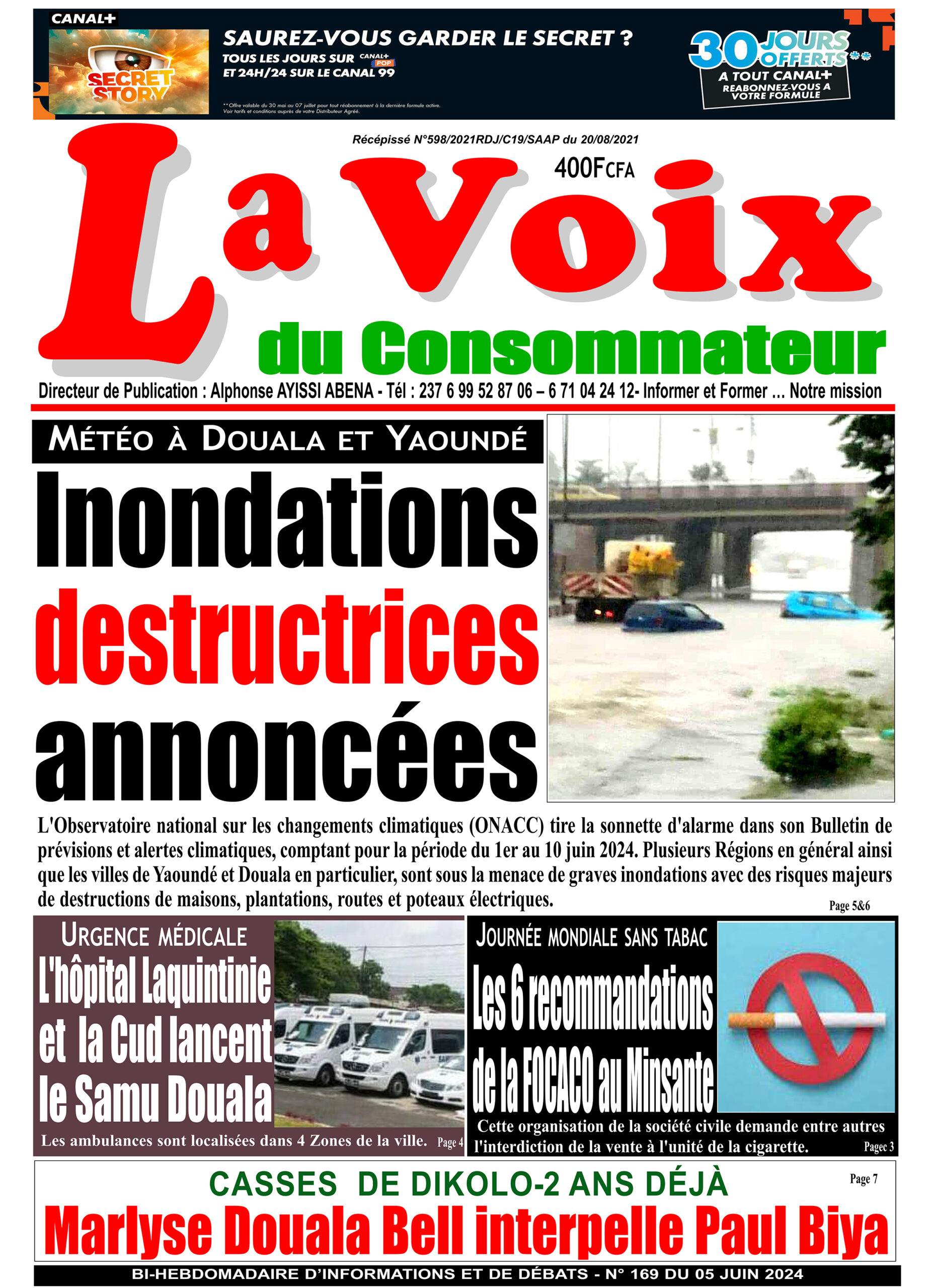 L’Observatoire national sur les changements climatiques (ONACC) tire la sonnette d’alarme dans son Bulletin de prévisions et alertes climatiques, comptant pour la période du 1er au 10 juin 2024. Plusieurs Régions en général ainsi que les villes de Yaoundé et Douala en particulier, sont sous la menace de graves inondations avec des risques majeurs de destructions de maisons, plantations, routes et poteaux électriques.