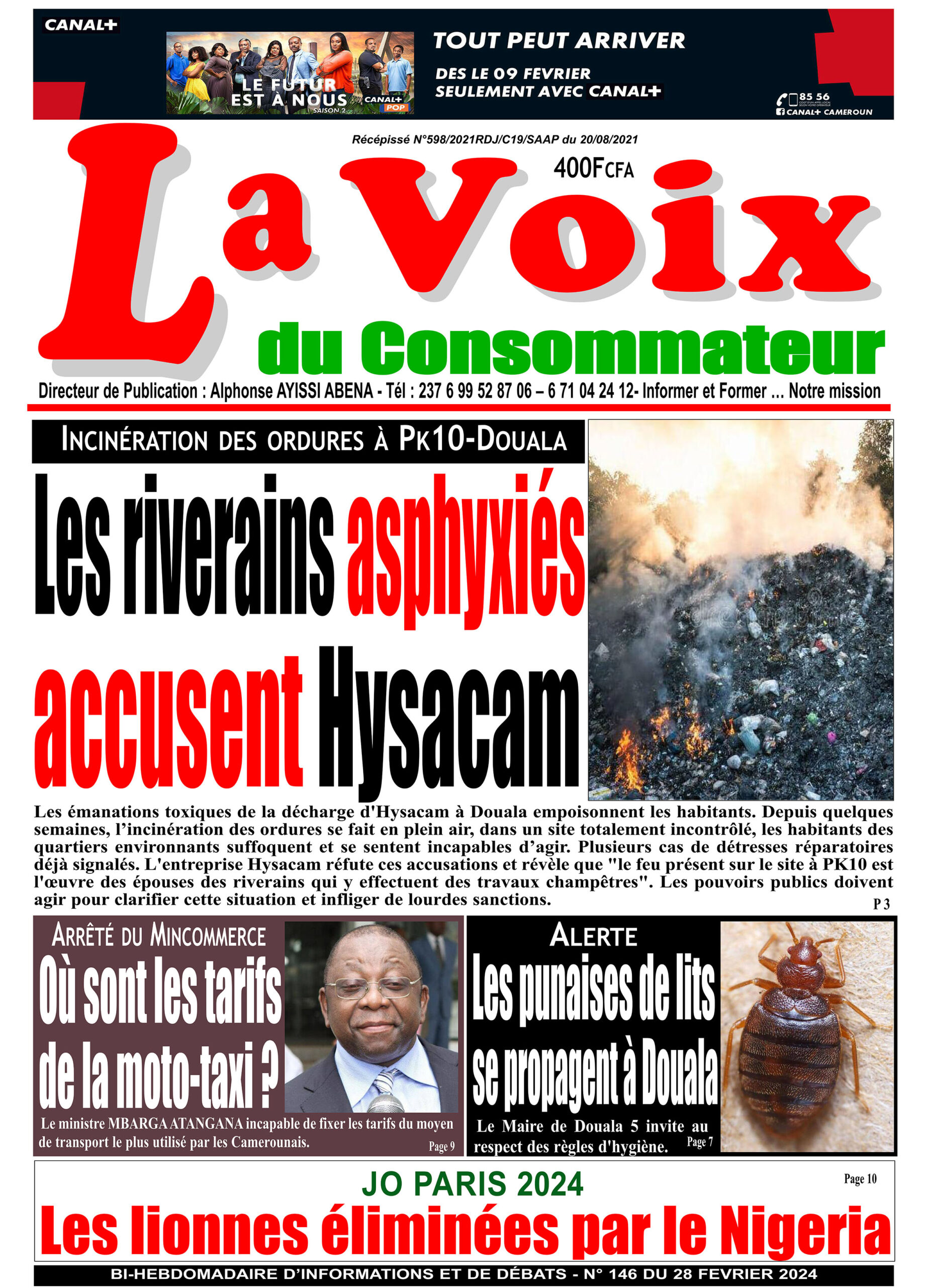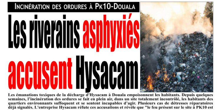 Les émanations toxiques de la décharge d’Hysacam à Douala empoisonnent les habitants. Depuis quelques semaines, l’incinération des ordures se fait en plein air, dans un site totalement incontrôlé, les habitants des quartiers environnants suffoquent et se sentent incapables d’agir. Plusieurs cas de détresse respiratoire déjà signalés. L’entreprise Hysacam réfute ces accusations et révèle que « le feu présent sur le site à PK10 est l’œuvre des épouses des riverains qui y effectuent des travaux champêtres ». Les pouvoirs publics doivent agir pour clarifier cette situation et infliger de lourdes sanctions.