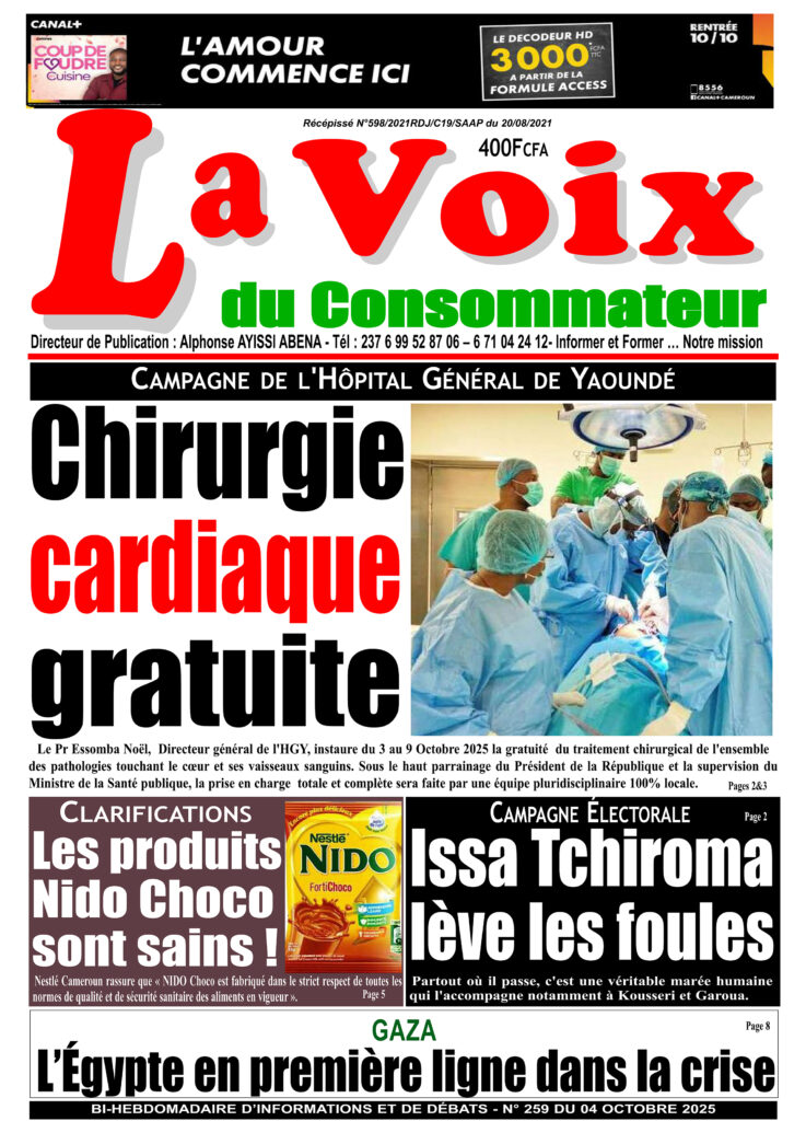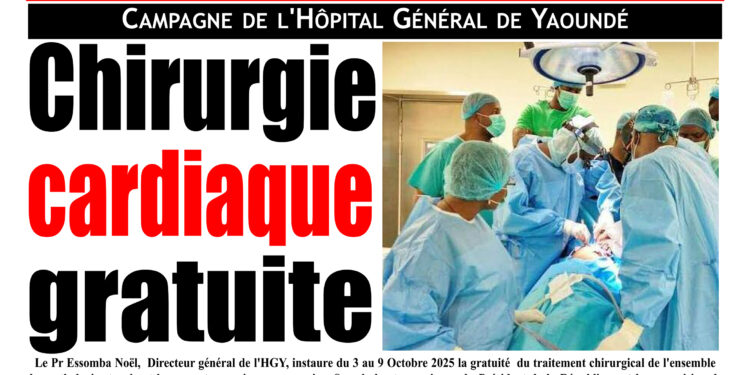 Le Pr Essomba Noël, Directeur général de l’HGY, instaure du 3 au 9 Octobre 2025 la gratuité du traitement chirurgical de l’ensemble des pathologies touchant le cœur et ses vaisseaux sanguins. Sous le haut parrainage du Président de la République et la supervision du Ministre de la Santé publique, la prise en charge totale et complète sera faite par une équipe pluridisciplinaire 100% locale.