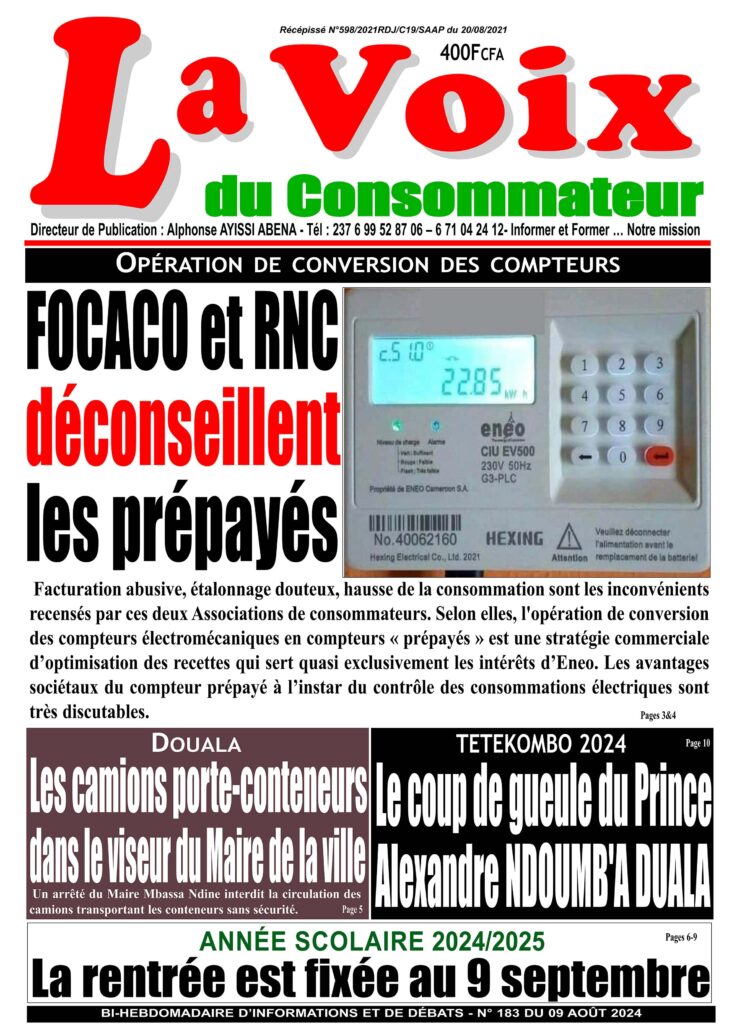 Facturation abusive, étalonnage douteux, hausse de la consommation sont les inconvénients recensés par ces deux Associations de consommateurs. Selon elles, l’opération de conversion des compteurs électromécaniques en compteurs « prépayés » est une stratégie commerciale d’optimisation des recettes qui sert quasi exclusivement les intérêts d’Eneo. Les avantages sociétaux du compteur prépayé à l’instar du contrôle des consommations électriques sont très discutables.