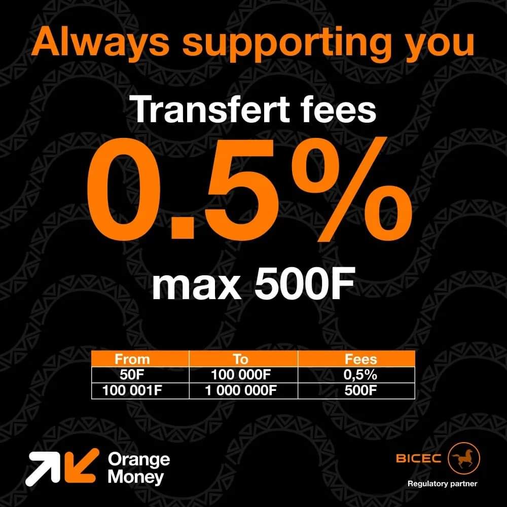Henceforth, your transfer fees cost 0.5% of the amount transferred and do not cost more than 500F via #OrangeMoney